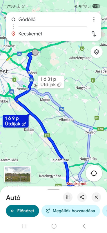 Kecskemét felöl jönnék az M5-ös autópályán, de mindkettő a városon akar átvinni a célomhoz.