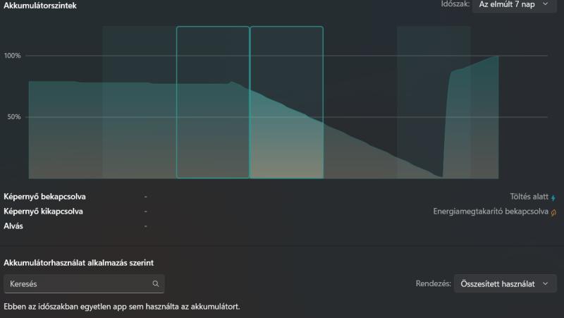 Tegnap kérdezte hogy sima netezés, Youtube videot ha néz, vagy kisebb energiaforrás feladatot csinál (pl, hálózaton másol pár Gb adatot), akkor maximum 1,5 órát bír a laptop, úgy hogy nincs töltön.