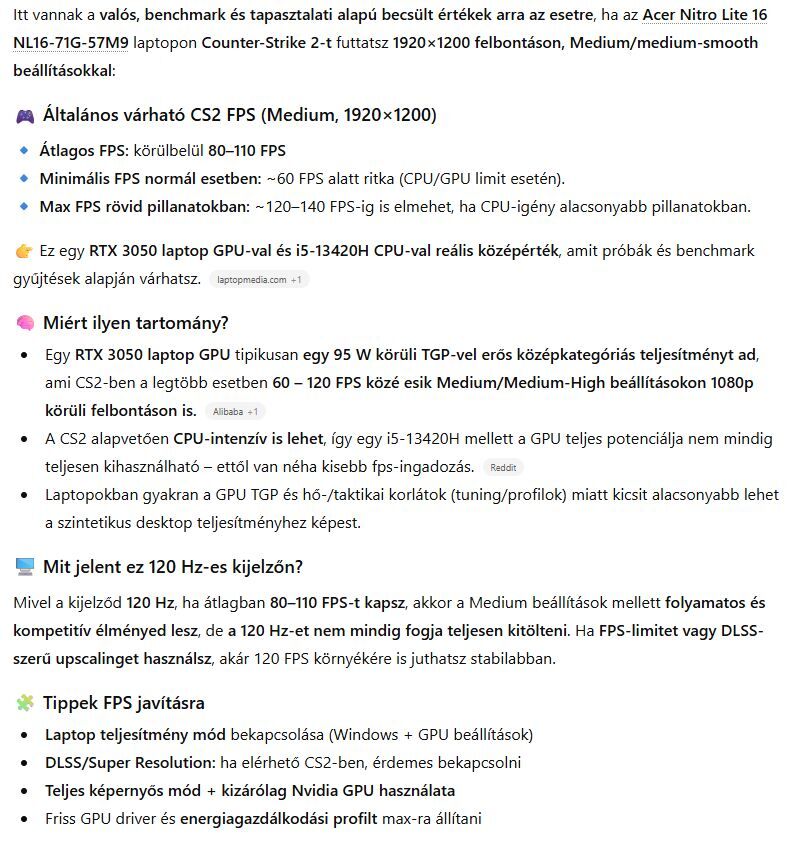 hali srácok, egészen konkrét kérdés lenne: ezen az acer-en el tudna ketyegni a cs2 1200p-ben 120 hz-en medium beállítások mellett? köszi előre is!