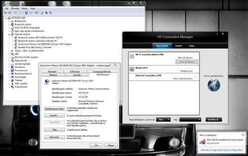A notebook wifi egységével van problémánk. A készüléket először Windows 8 operációs rendszerrel telepítettük, gond nélkül látta a vezeték nélküli hálózatókat és tudott is csatlakozni a kiválasztotthoz. Később Windows 7-et telepítettünk a gépre. Win7 alatt már viszont nem tudtunk kiválasztani vezeték nélküli hálózatot, viszont a driver fent van hozzá, nem is jelzi az eszközkezelő, hogy probléma lenne vele (csatolt képen látható is). A HP Connection Manager azt jelzi, hogy a wifi nem áll készen. A notebookhoz kapott CD-n lévő driverrel nem ment. Windows által telepített sem volt jó és a HP oldaláról is letöltöttük a hozzá valót(ezt kétszer is megpróbáltuk), de így sem jártunk sikerrel. Ezek után felvettem a HPval a kapcsolatot, ők küldtek egy 450-es drivert de az sem volt megfelelő. Ezek után azt tanácsolták, hogy szedjük le a hátlapját nézzük meg, hogy nem-e húzódott le a wifi adapter, de ilyet sem tapasztaltunk. Bios update-et és újból Windows8 telepítést tanácsolták viszont ez kettő sajnos már körülményes lenne, mert a készülék használatban(munkaeszköz, dolgoznak vele) van már és ezért gondoltunk arra, hogy megkérdezünk Titeket, hogy tudnátok-e segíteni ebben, találkozott-e valaki hasonló hibával.Segítségeteket és válaszotokat előre is köszönöm