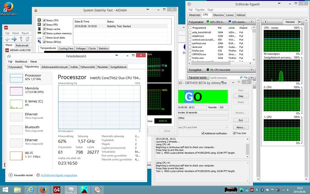 Fut az aida64 stabilitás tesztje, és mellette egy orthos elvileg 2 magon.