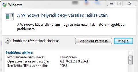 Kékhalál után az alábbi üzenetet jelezte a laptop: