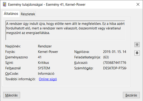 Eseménynaplóban ennyit találtam, mitől lehet ez, vagy mi okozhatta?