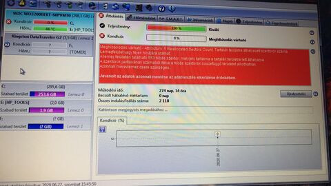 Lenne egy kérdésem mikor indítottam a laptopot kiírta, hogy 1720: SMART hard drive detects iminent failure Failing attribute: C8) Please back up the contents of the hard drive and run HDD Self test in f10 setup...