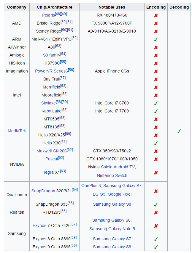 Az a lista a VP9 támogatásról szól, amit dekódolni a HD 5500 is tud.