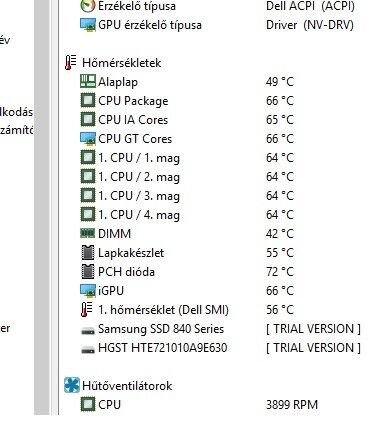 Van nekem egy Dell Inspiron 7720 laptopom. Minden szép, minden jó, működik rendesen win10-el. Viszont egy dolog nagyon zavar. A hűtése bekapcsolás után kb 5 perccel felpörög és így is fog menni míg ki nem kapcsolom. Melegszik is a szerkezet. Ránéztem AIDA-val: