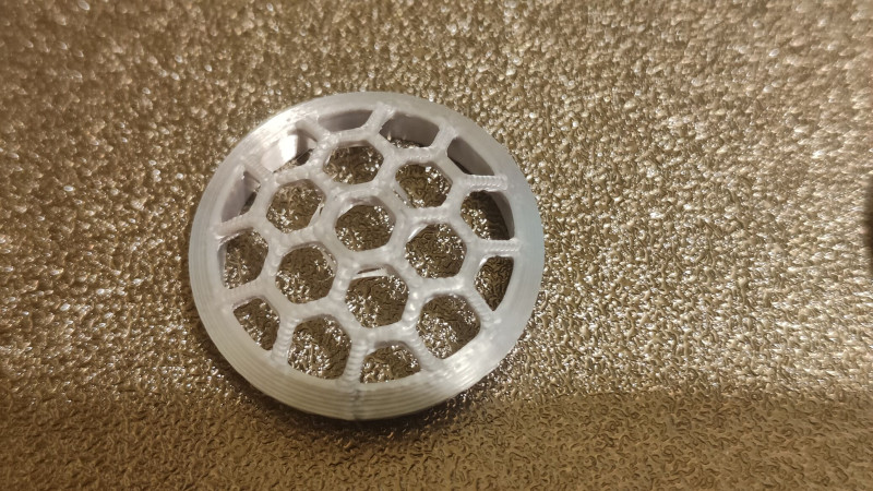 Azért van sikerélmény, főleg lányom élvezi. Na jó, én jobban. Most itt egerben volt olyan vihar, áramszünet 3x is, pont nyomtatás közben. De szépen folytatta. Persze kis hiba látszik pont ott. 220fokon szép fényes a felület. Amugy a sörös kupak fedele kicsit durva. Ezt az orca ban hol lehet állitani hogy ez a réteg szebb legyen? Gondolom a sebességgel volt baj. Mert a söröskorsó minta,