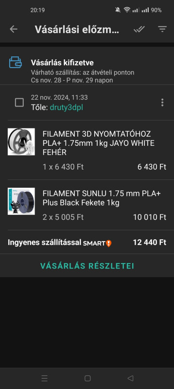 Amugy itt is érdemes szétnézni, ezt tegnap rendeltem. Első vásárlásnál 4000ft kupont kapsz. Hogy fel tudd használni, A feltétele, hogy egy eladótól kell min.12ezerért vásárolni, és kártyával fizetni. Ingyen szállitással 2kg sunlu pla+ és 1kg jayo, 12ezerért azért nem rossz.