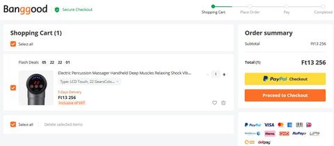 Nade sebaj, kitörlöm a két rendelést, megcsinálom újra. Kupont mostmár elfogadja. Jeeee. Ééés nincs Proceed to check out... Csak pay now. Gépen, ahogy korábban volt proceed to check out, most nincs.... Na ezért arra nyom mindenki, mert az útvonalak 99%-án amin el lehet jutni a fizetéshez NINCS proceed to check out. Most hagyom egy kicsit, mert felhúzott a Banggood, egy óra alatt nem lehet megrendelni gyors fizetés nélkül... Végem van. Komolyan, a csillagok, bolygók együttállásán túl már éppen egy kecskét nem áldoztam fel... De akkor sem megy.