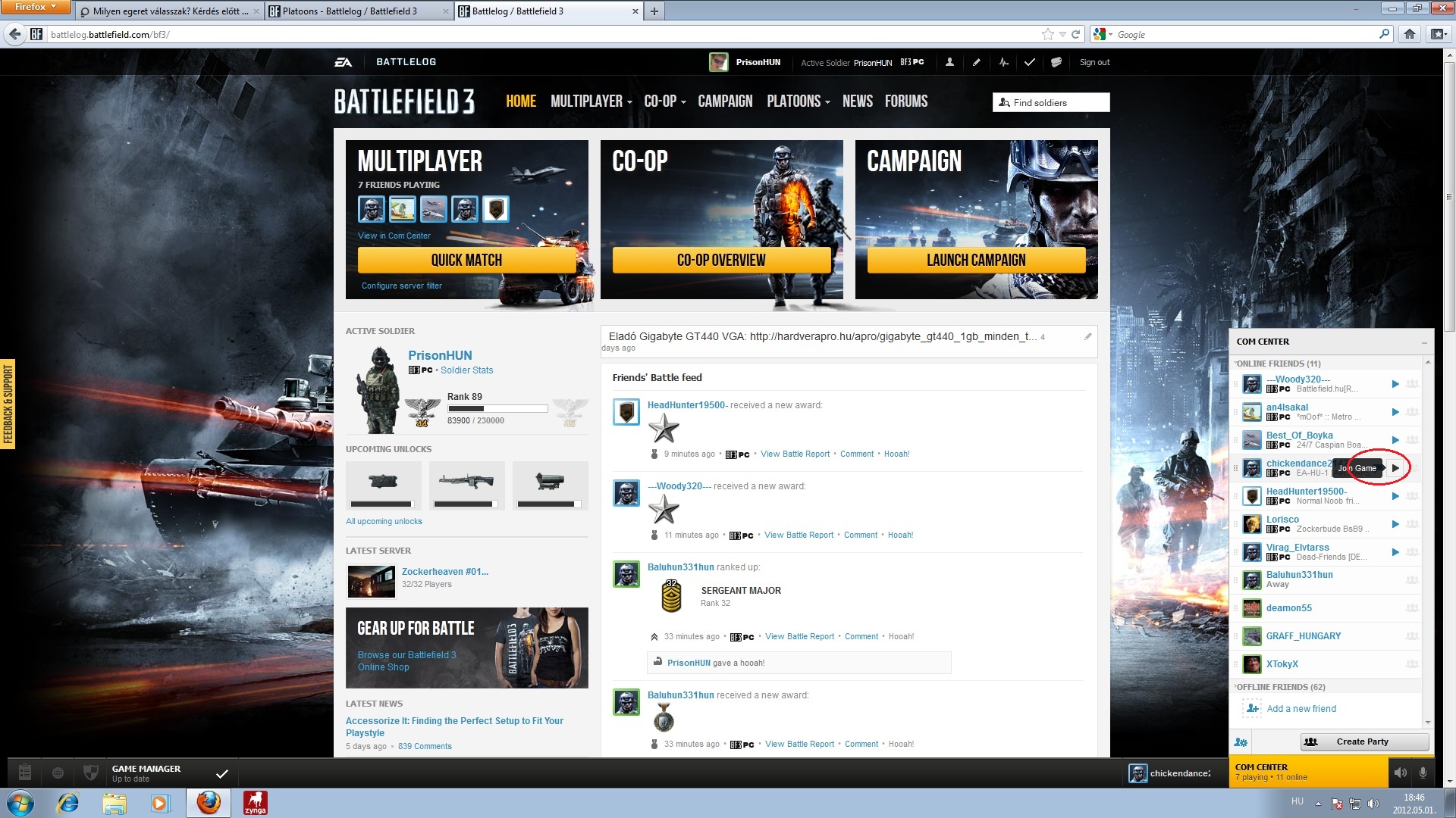 Két külön barátlista van. Az Origines az EA-s ismerősödet magába foglalja legyen szó MOHosokról vagy NFSesekről. A Battlelog a Battlefieldeseké.