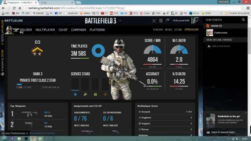 Tegnap a 33805 hozzászólásomba felraktam egy hős harcost akivel este össszehozott a "szerencse".Mondom ránézek ma is a linkjére.Hát tegnap óta nagyon beerősített a kolléga, nézzétek a statjait meg a játszott időt.Érdemes a tegnapit összehasonlítani a ma reggelivel. [SA]Cr4zyI3itch98 egy igazi Rambo a kis buzivirág. -