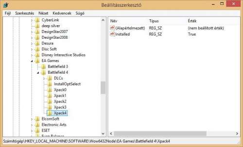 3. keresd meg a HKEY_LOCAL_MACHINE > SOFTWARE > Wow6432Node > EA Games > Battlefield 4 mappát