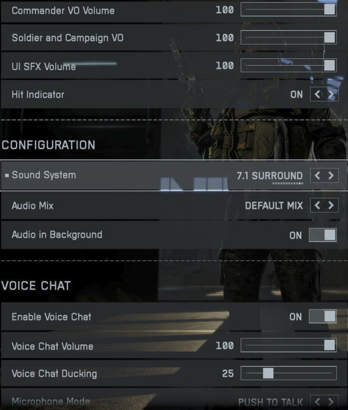 Kb 6 óra játék után anno bementem Audio settings-be és a 7.1-es fülesemhez kiválasztottam a lenti képen látható 7.1-es beállítást azóta számomra full felsőpolc a hangzás, pedig mellé a default mix-et használom, vajon milyen lehet egy wartapes?