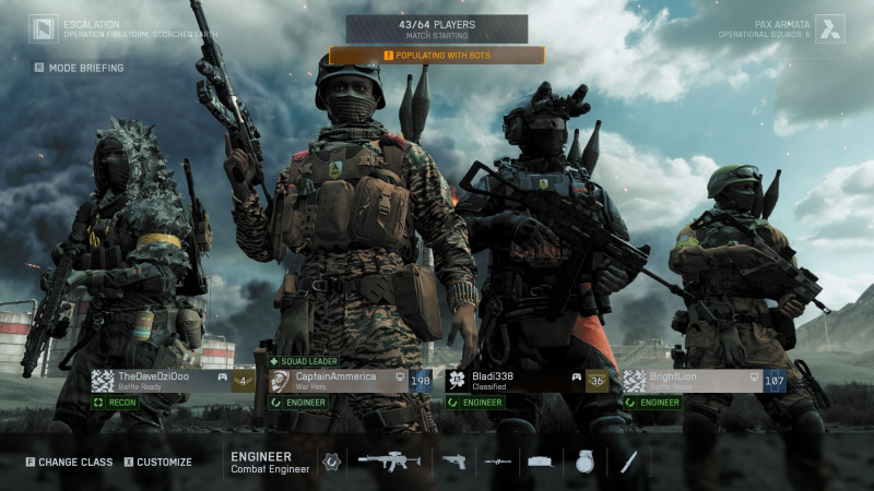 nem tudom, azzal nem játszottam nagyon. igen nagyon idegesítő, hát épp ez lenne a lényege hogy a csapatmunka, milyen darálásokat lehetne folytani, de nem mert csak squad társ ülhet be.