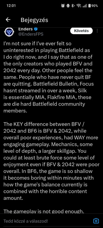 Kicsit görcsösen akarnak bizonyítani a devek, hogy most aztán na...Ennek ellenére tartom a véleményem, a BF 6 felfelé lóg ki abból a bizonyos sorból minden aspektust figyelembe véve.
