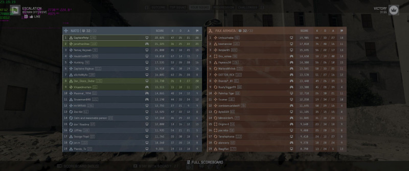 A balanasz az szerintem is elég tré, amúgy én azt vettem észre, hogy a legnagyobb stat rontóm én magam vagyok, pl most jobban koncentrálva csináltam 28-6-os K/D-t, előtte meg kábé bekómálva valami 21-18-at sikerült. és a hitreg azóta nem változott. Sajnos nálam mindig az elő pár kör a legjobb, de este felé fáradtan már elég meredeken csökken a hatékonyságom.