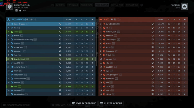 Na végre TOP 10 győztes csapatban. Cset majd felrobbant, mert mindenki ekézte a support-okat teljesen jogosan, hogy mégis mit csinálnak ha nem revive-olnak!? Én is beszálltam, mert már kiidegeltek, és vesztésre is álltunk. Utána so-so kicsit megemberelték magukat.