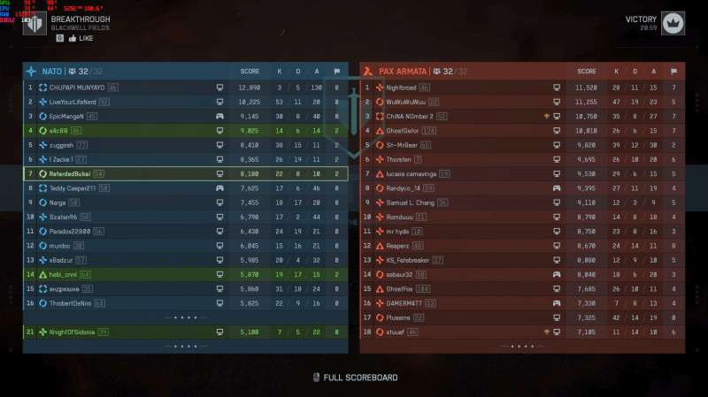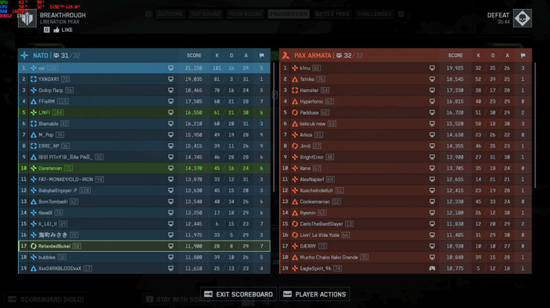 Kár, hogy meccs közben be kellett kapcsolnom a frame gen-t. Néha nem tudom mivan a játékkal, leesik (azt írja) 65-75 FPS-re, de kevesebbnek érződik attól is. Még frame gen-el is voltak lagjaim, remélem ez server oldali eddig nem voltak ilyen gondjaim