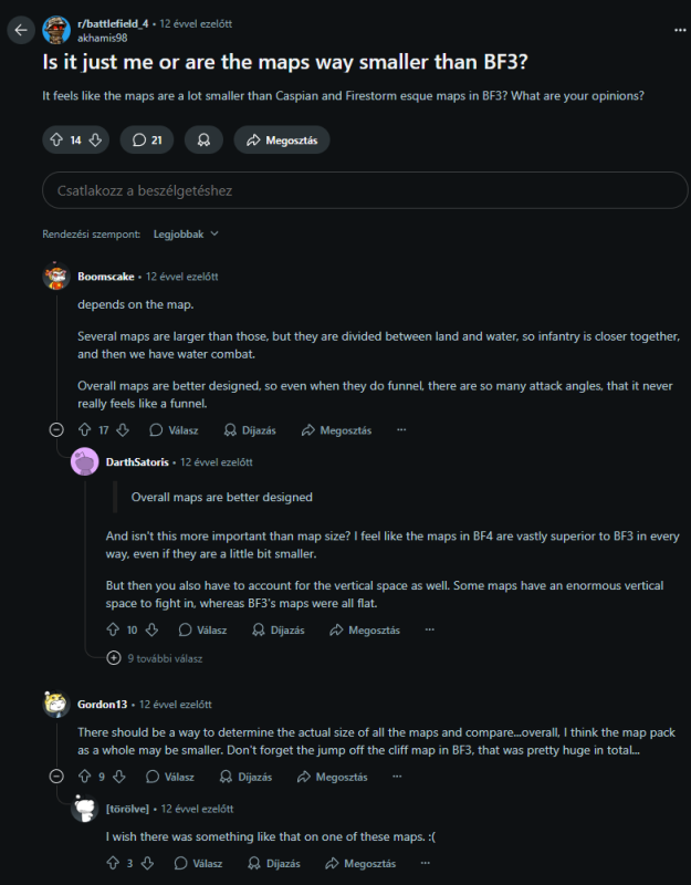 Lehet rosszul tudom, de 2042-ben azért ment a sírás, mert szimplán szarul voltak megtervezve, nem azért mert nagy. Kitalálták hogy milyen menő lesz a 128 playeres meccsek, de jó pályákat már nem sikerült készíteni hozzá.