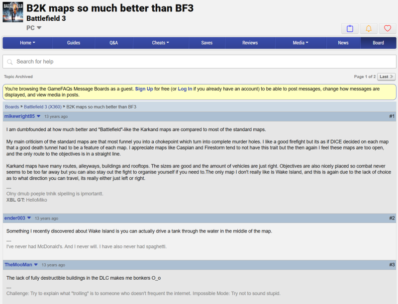 Személyeskedést kerüljük, nem tűrjük itt. A téma a játékról szól és nem egymásról, ez egy barátságos BF közösségépítő téma, maradjon is így.
