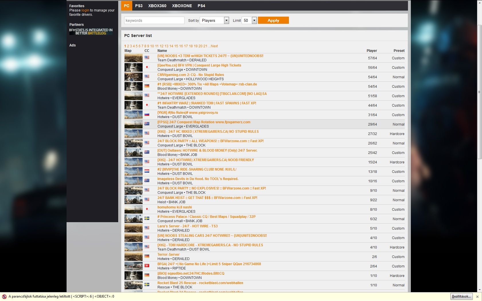 Csinálnátok nekem egy képernyőmentés a szerverekről az alap pályákat futtatókról hogy mennyi van, és hogy menyien játszanak rajtuk