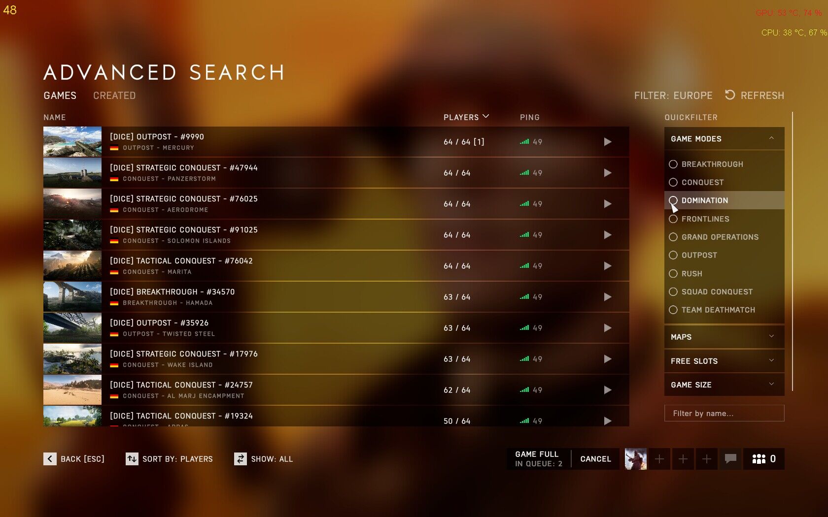 Mondjuk késő éjszaka ez így van bármilyen mód esetén, ha egy csapatból lelép 3-4 ember akkor vége van mert esély sincs nyerni mert balanc nincs és játékos se aki feltöltené az oldalt -