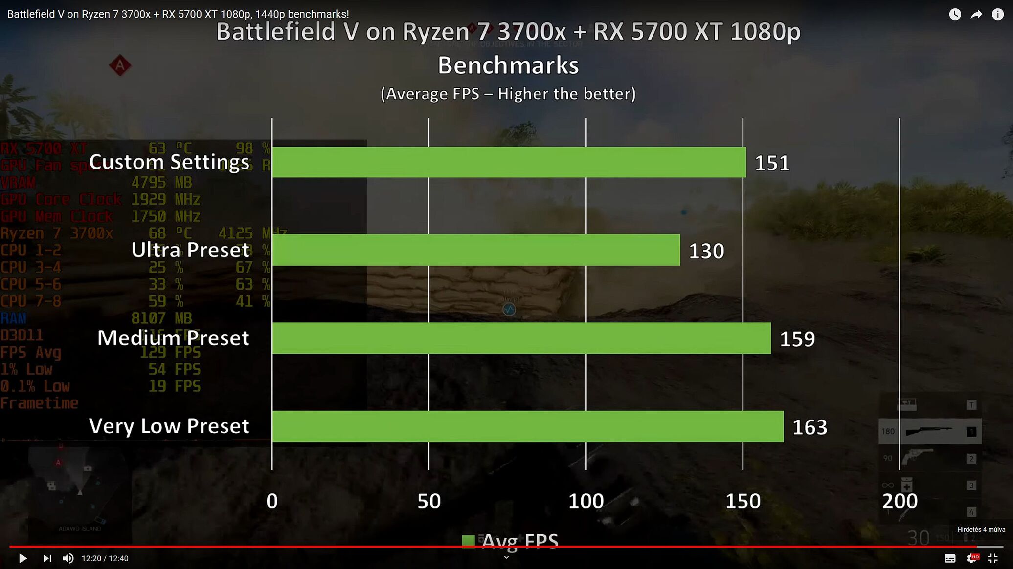 Bf5-ben multiban ha maga a játékra és a feladatra koncentrálok én kb semmit sem érzékelek low és ultra között látványban. Persze ha csak sétálgatok a mezőn akkor igen