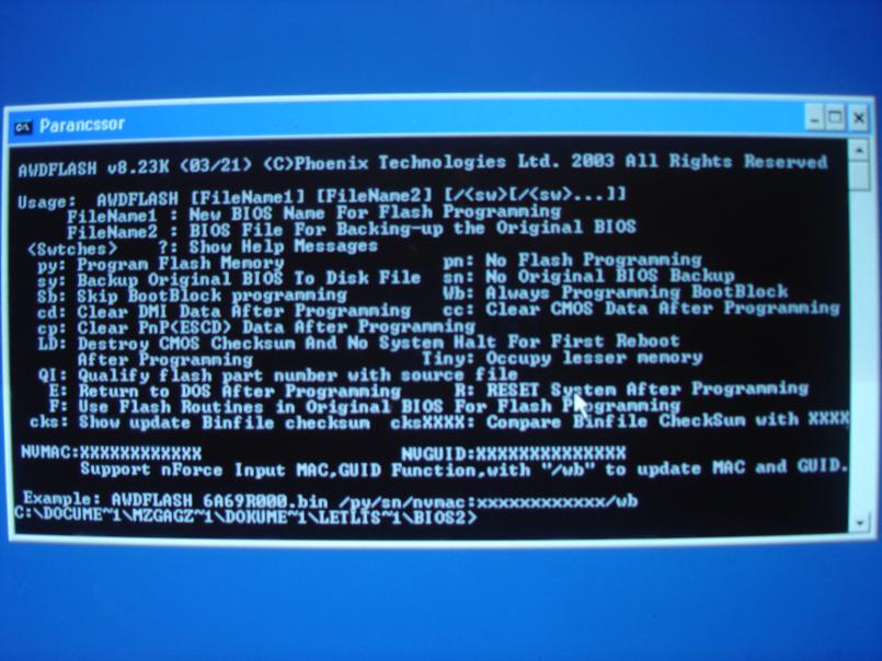3. Ezután alaplap gyártójának weboldaláról letöltött BIOS frissítő program floppy behelyezése.
