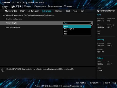 Más alaplapnál itt találod: Peripherals=> Initial Display Output s ott a PCIe Slot1-t kell választani.