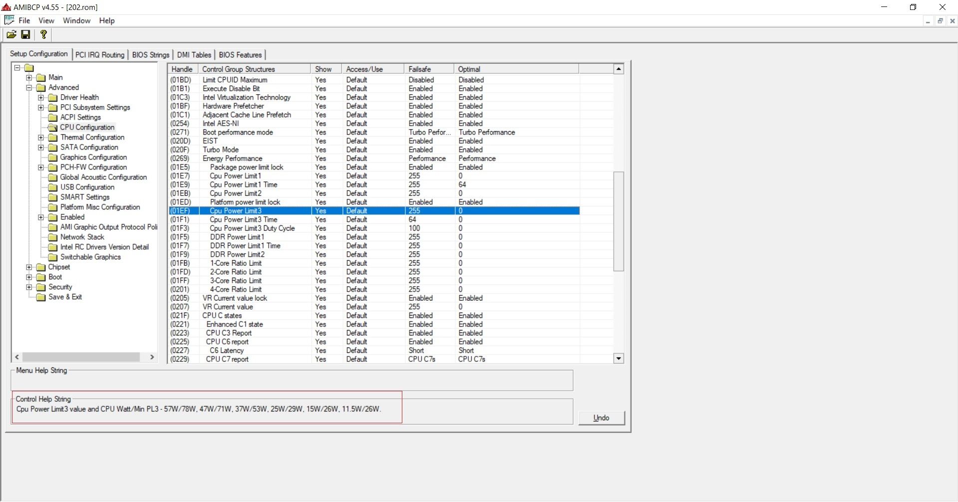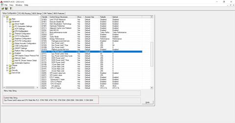 Sziasztok. Egy extra beállitásokat tartalmazó biost töltöttem fel a laptopomra ami annyit tesz hogy cpunál tudok több mindent állitani. Annak reményében hogy kikapcsoljam a CPU Throttlet. Neten mindenhol a cpu power limit 1 és 2 nél irják hogy állitsak nagyobb értéket, ez meg is történt csak hogy nem hozott semmi javulást. Viszont van egy power limit 3 is. Itt viszont nem tudom hogy kell értelmezni az értékeket és mit kéne beirnom hogy kitoljam a limitet? Próbaképp beirtam egy 10-es értéket hogy megnézzem csinál e valamit egyáltalán. Hát csinált. Annyit értem el vele hogy nem postolt a gép, fekete képernyő valamint a ventilátort maxra pörgette vele. Szerencsére visszahoztam az elem kivételével. Mellékelek képeket.