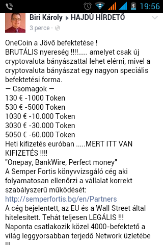 Nem is értem ezt az egészet, az elején még azt írják, hogy mekkora hoax a bitcoinhoz hasonló OneCoinba fektetni, aztán meg hogy az MNB felhívta a figyelmet a bitcoin veszélyeire...