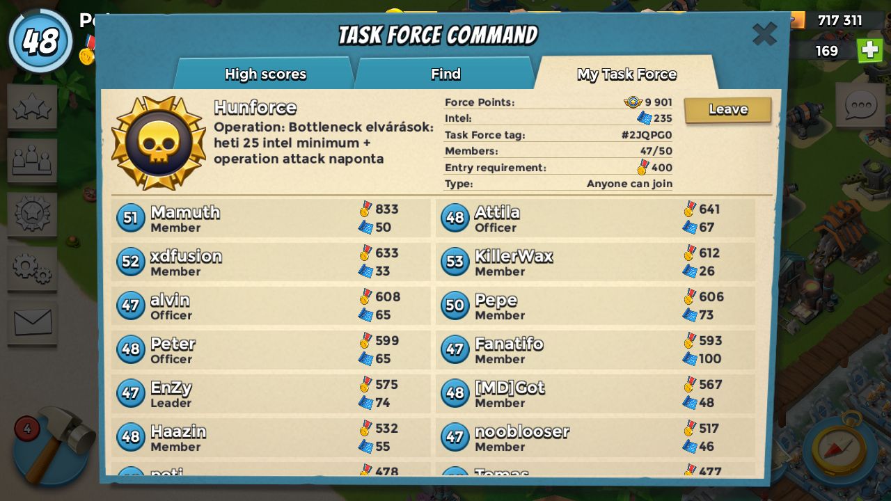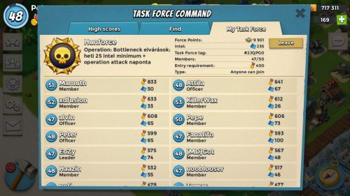 Op támadások note alapján mennek, nincs meghatározott időben való támadás, sokan munka mellett/közben nyomják.Elvárások: heti min 25 intel, 400 Vp, aktív op részvétel.