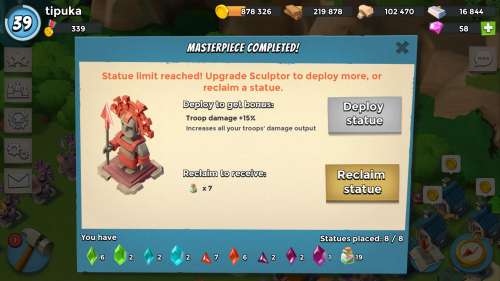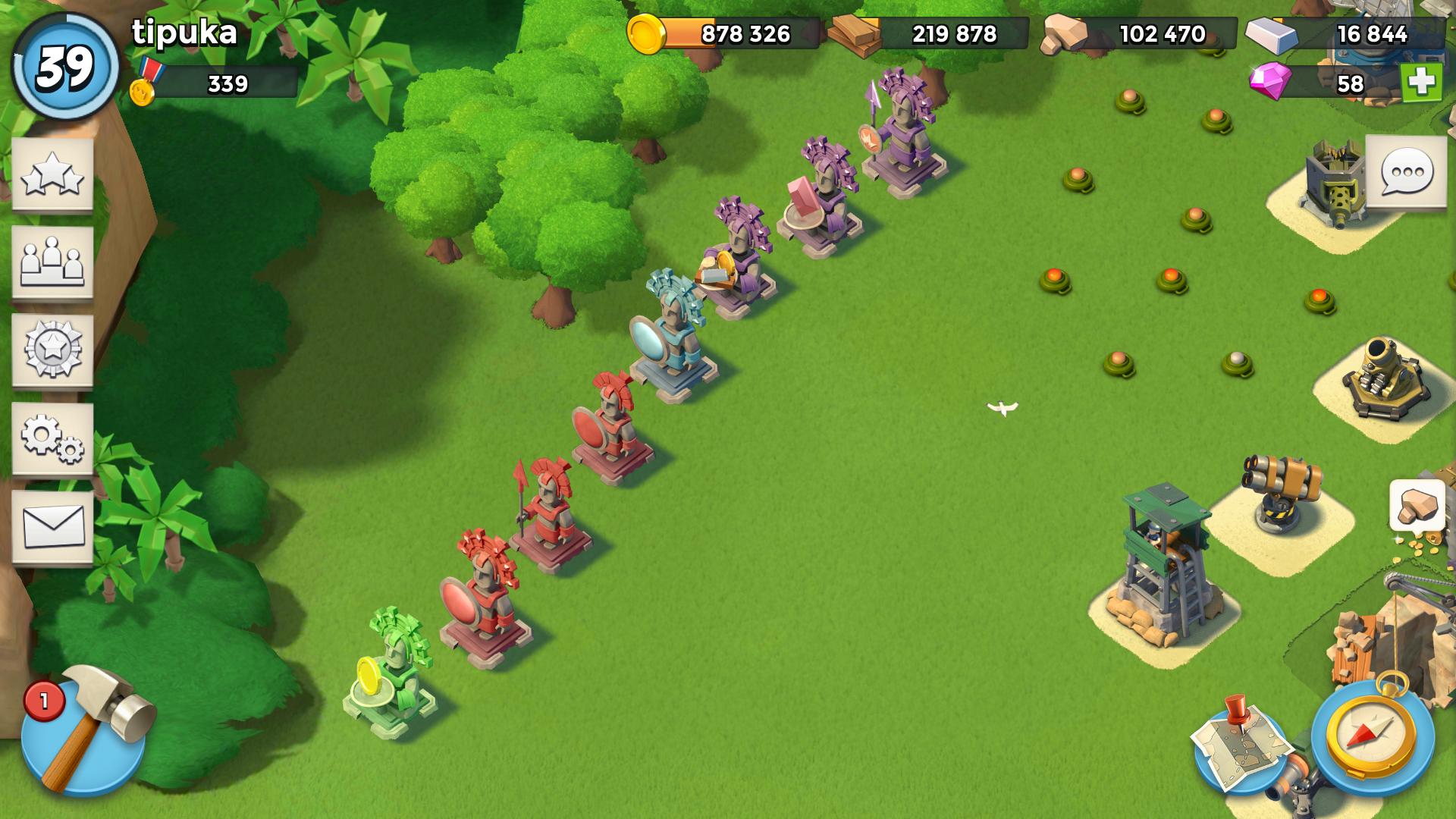 Nálam is nagy a szívás, mert volt eddig bőven mit ledarálni, mondom akkor a lila/piros szobrokba fektetek energiát, a zöldet/kéket lebontom. Hát sokszor üres járátban van a fejlesztés. Sokszor csak szerdán és szombaton fejlesztek, mert gyüjtögetni nem tudok, mert kirabolnak.
