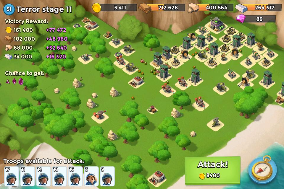 Én úgy vettem észre hogy inkább kisebbet, de veled közel egyenrangú ellenfeleket dobál a gép. Viszont ugye ő erősödhet közben míg nem támadod és tűnteted el a térképedről. Viszont a gépi ellenfelek mindig gyengébbek amiket a szigetre rak: én most vagyok lvl40, és a gépi ellnből lvl33-asokat rak többnyire.