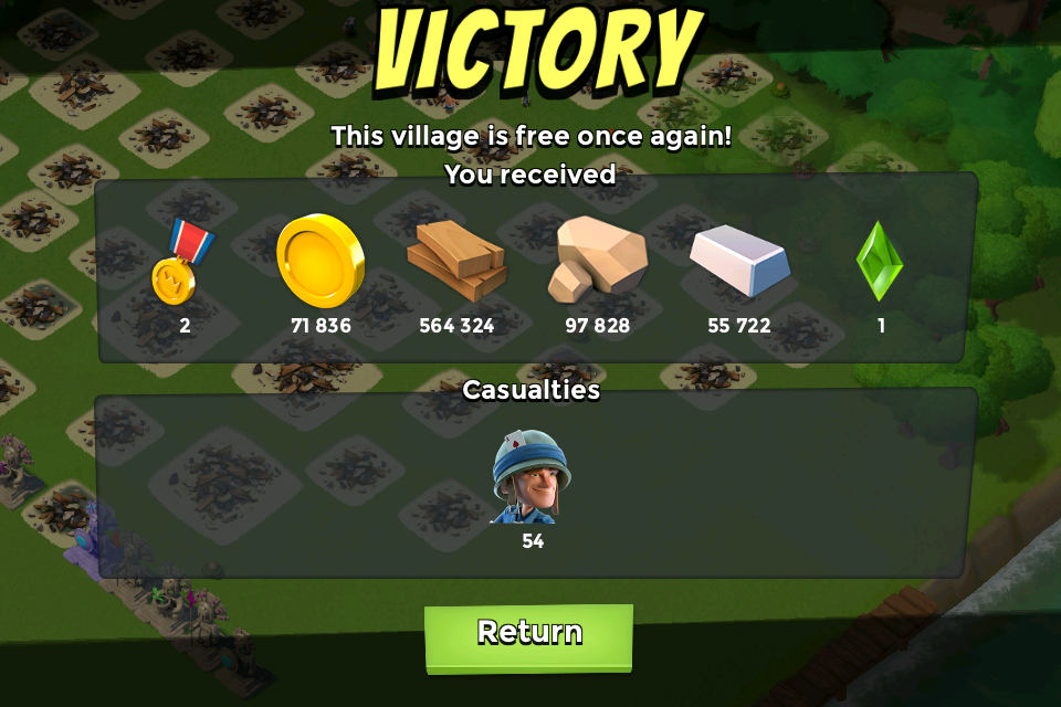 Én általában nagyobb fejlesztésnél amikor kell kb. 1,5 milka fa, 1 milka kő és 3-400e. vas, akkor szoktam a két lila szobromat erre a 3 órára felturbózni. -