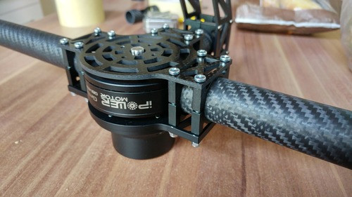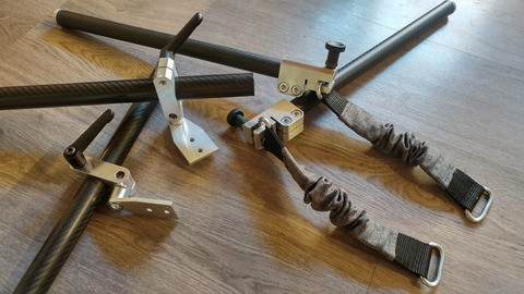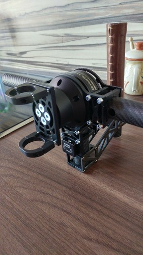 Az előző verzió kb. 4,5kg volt. A mostani, csapágyazással, plussz alkatrészekkel, nehezebb motorokkal már 5,5kg felett vagyok. Eddig sem volt egy leányálom tartani huzamosabb ideig, most meg pláne. Régóta nézegettem tartókat, de vagy nagyon bénákat, vagy nagyon bonyikat találtam. Eddig.