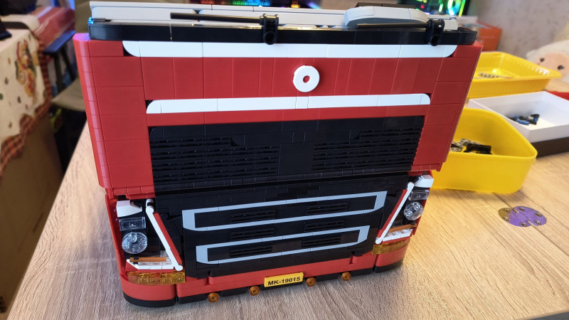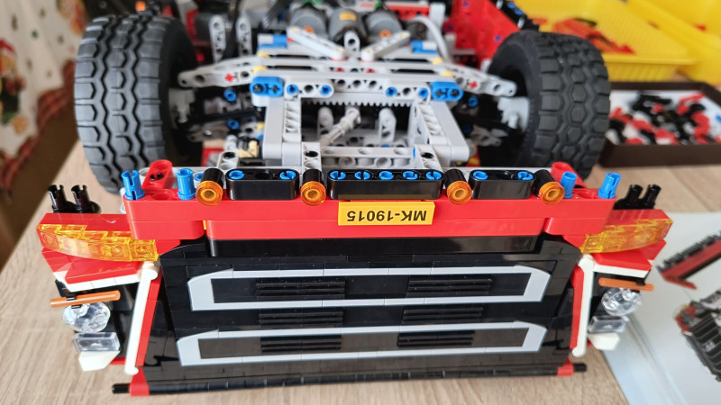 A Mould King később kiadott egy javított változatot, 19015S jelzéssel (nekem már ez van), amiben ezeket a hibákat - elméletileg - kijavították. Meglátjuk, sikerült-e. Az egyik legnagyobb hibája az eredeti készletnek az volt, hogy a fülke súlyát nem bírták el a pneumatikus munkahengerek, így könnyen eltörtek, vagy meg sem bírták azt emelni. Az összerakásiban én már pár helyen láttam, hogy a leírásban módosítás történt, sok műanyag alkatrészt fémre cseréltek, remélem, ezzel tényleg megoldódott a dolog. Nem mintha sokat akarnám működtetni ezeket, de azt nem szeretném, ha egy próba során eltörnének...