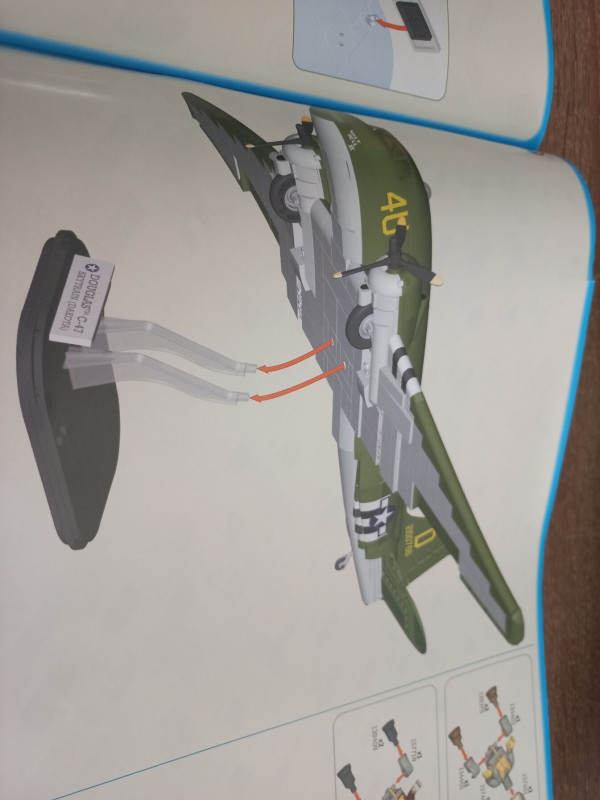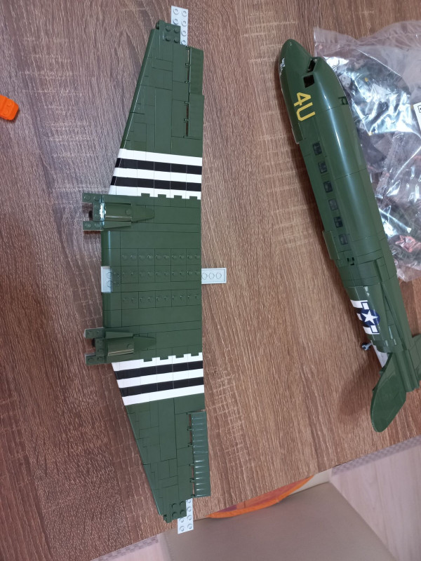 Elkészült a 2. zacskó a szárnyak. Először elképzelni se tudtam hogyan lesz ebből szárny, de a végeredmény masszív jól illeszkedő stabil darab lett. Építeni egy rémálom volt, nagyon nehéz, és nagy odafigyelést igényelt. Hiába a 9+ ezt egy 9 éves gyereknek nem biztos hogy odaadnám. Egy biztos, aki cobi legoval szemezget elsőre 1000db-os készletnél nagyobbat ne vegyen, sőt inkább 500 közelit ajánlanék próba képpen. Maga a repülő félkészen is már pofás, de kegyetlenül nehéz építeni. Aki ilyen építési élményre vágyik az itt sokkal többet kap, mint a Lego esetében.