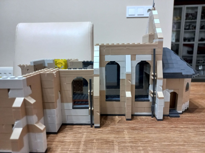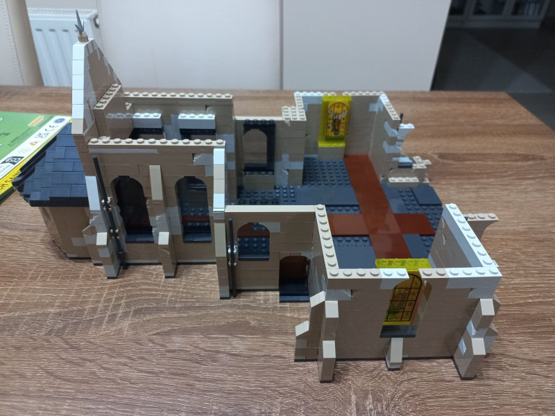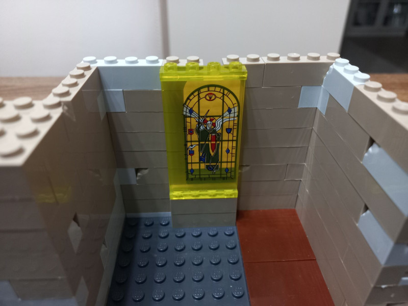 Továbbra is nehéz és komplex az építési folyamat, de imádom. Az ablakokat a valódi templom ablakairól mintázták.