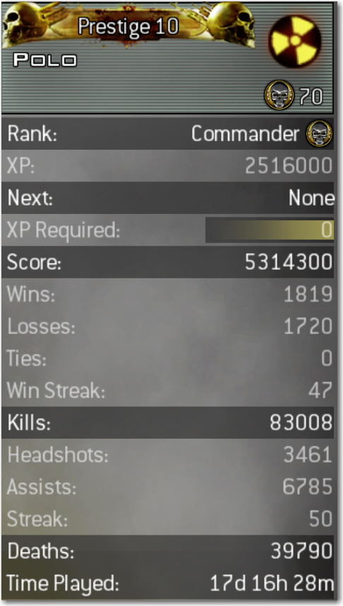 Levelhack-el nem olyan nehéz. 3 hónapja is megvolt az 50k killed, gondolom szépen átírtad a statodat most is. Emlékszem amikor feljöttél, privát partiba amit Laraxior csinált akkor ilyen 1/20-as statod volt. Kemény vagy. Büszke lehetsz magadra és a "statodra".