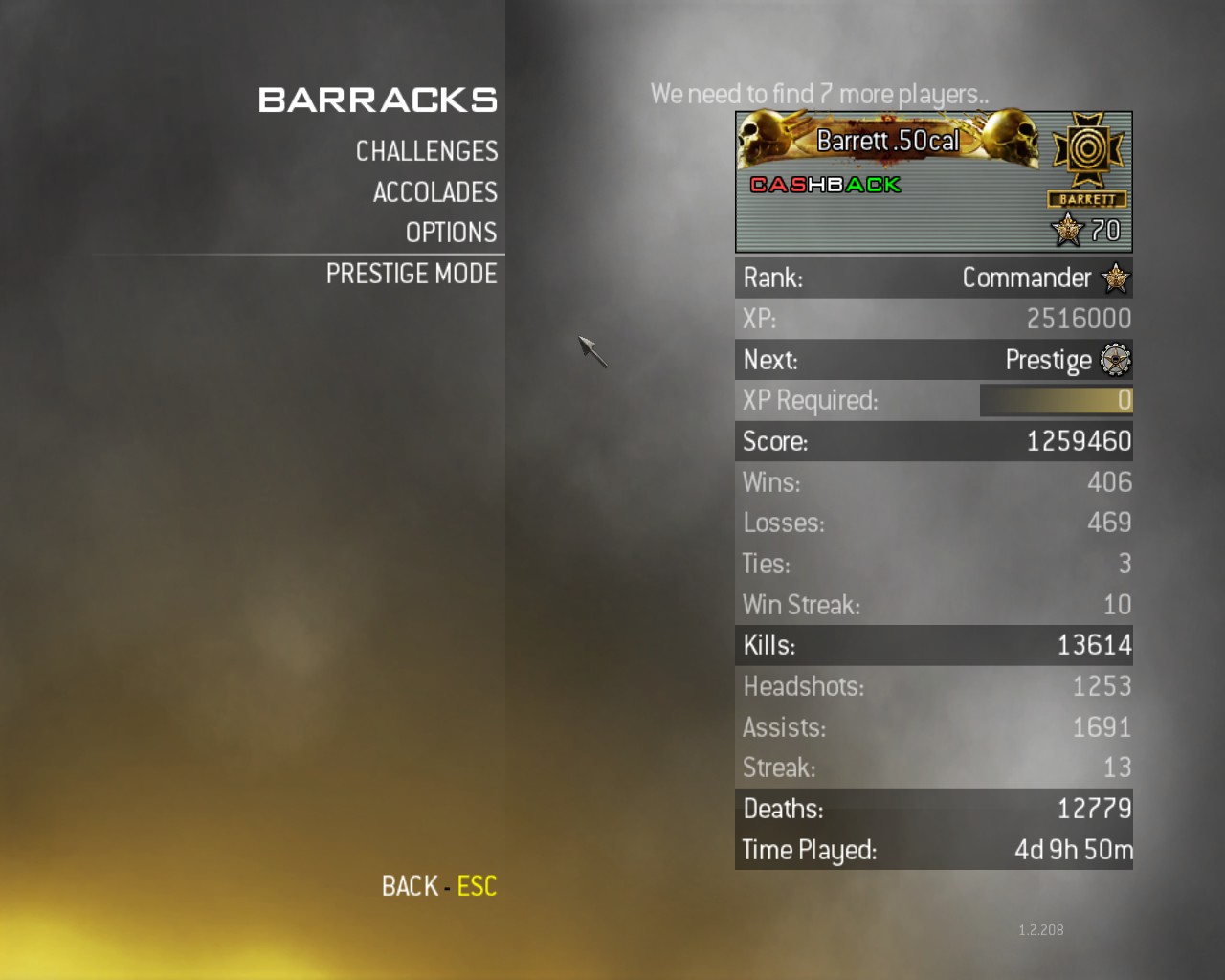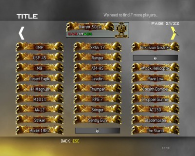 Ma sikerült belefutnom egy hackelt szerverbe... most úgy fest a dolog... Prestige 3 70.szinten vagyok. Minden kitűző, meg izé megvan... az összes fegyver minden fejlesztéssel együtt. Illetve az összes challenge teljesítve 100%-ra.