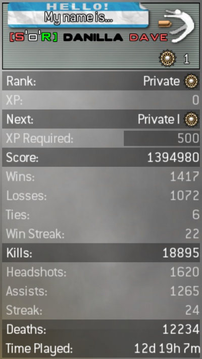 Egy kis új info a 2516000XP-ről, az összes level hack-osnak azt írja (aki nem hiszi járjon utána, detényleg így van)... pff, és mint köztudott a lvl hacker progikkal azt is be lehet állítani, hogy mennyi legyen a kill/deadt, nah most akkor te öltél egyáltalán, vagy csak szépen beállítottál mindent?