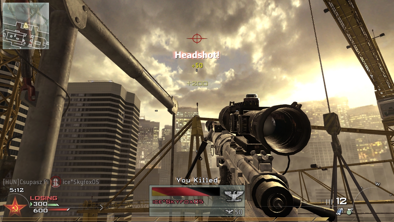 Említett utolsó sniper (valami M21 vagy mi) fmj-vel és saját távcsővel, hozzá striker grippel, meg C4. Perkek: straight of heand pro, cold blooded pro, ninja pro. -