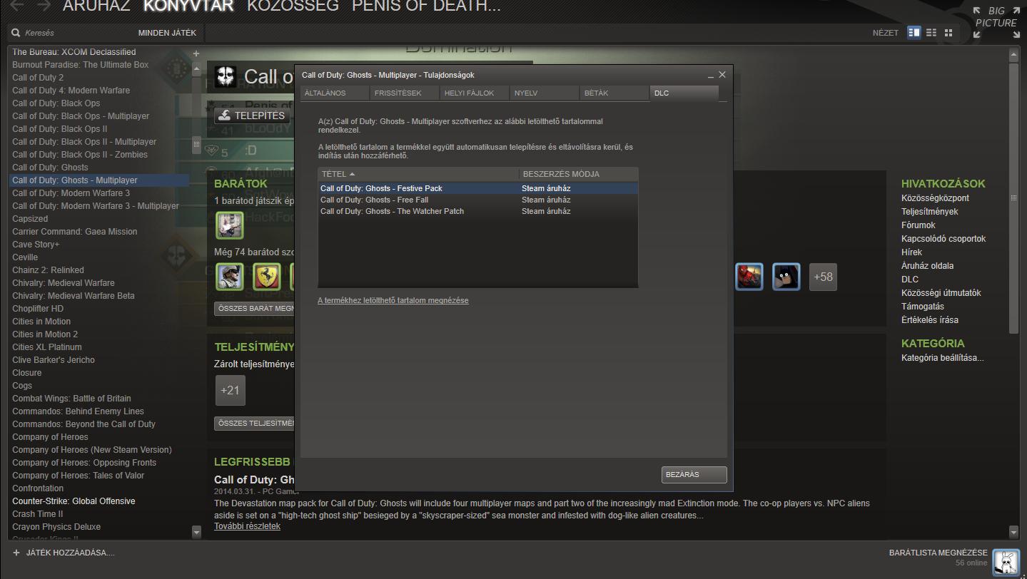 Technikai segítséget szeretnék kérni. Megvettük a gyereknek a hétvégi playit-en a ghosts-ot, steam-en regg., telepít, patch, majd indít......na nem megy....kidob a képernyő közepére a steam egy kis ablakot benne, hogy "ismeretlen hiba". A gép: 2120 alapon, 4gb 1333Mhz, HD5850, 500WD kb. 80Gb szabad hely. Jelenleg FC3, BF3, BF4, CoD BO1-2 no problem. Ez meg nem megy. Valami ötlet?