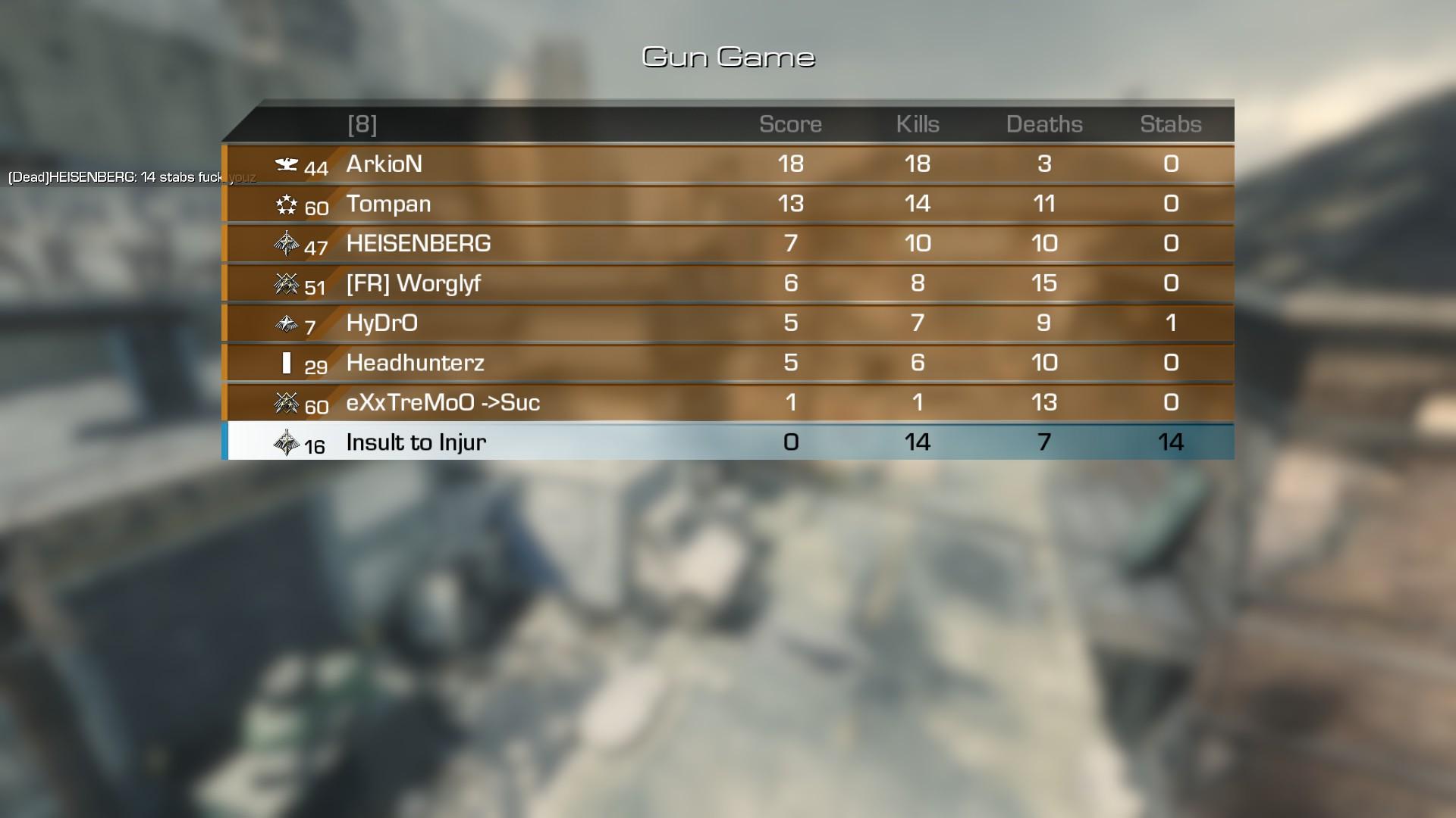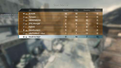 Legutóbbi meccsen ezen a pályán egy emberke csinált az enyémnél jobb score-t, és szerintem egy bizonyos helyéről öt métert nem mozdult el egyik irányban sem. Mondjuk én is szemét voltam mert ledobáltam neki az ammo crate-et meg a golyóálló mellényt hogy ne is kelljen neki elmennie onnét