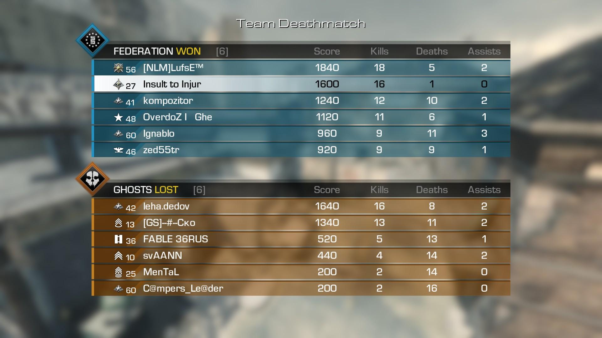 -BO2 -ben száz+ alkalommal előfordult hogy akikkel együtt toltam csapatban lecsalózták az ellenfelet, ebből talán egyszer értettem egyet velük. Óvatosságot, UAV-t, lagkompot, kempelést meg minden ilyesmit csalásnak gondoltak, de nem így van. Ez a tendencia Ghosts-ban is, csak itt nem játszom a megszokott népekkel mert vagy a játék vagy egy megfelelő gép hiányzik nekik hozzá (dx11-es videokártya lol...)