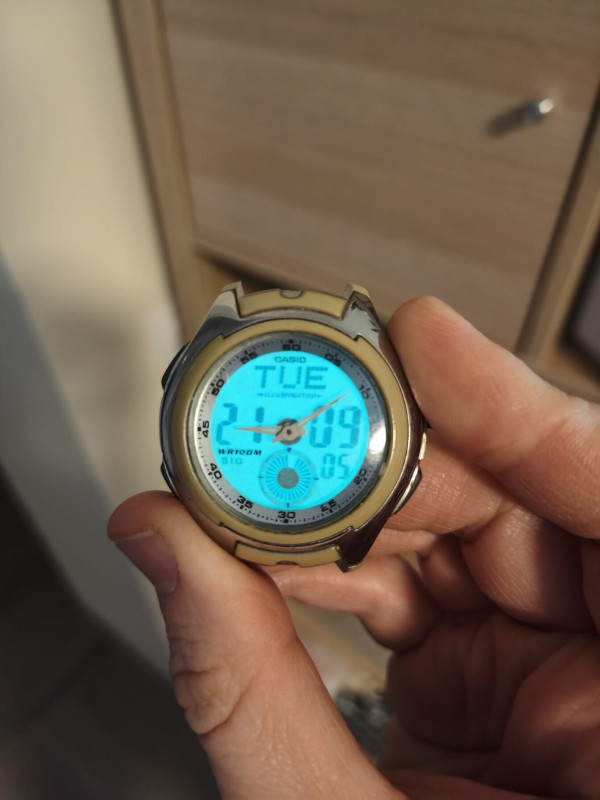Közben azt is kiderítettem, hogy újkorában ez teli ezüst lehetett (Casio AQ-160WD-7BVEF), csak sajnos a műanyag elemeket a festék megadta magát, és abból lett ilyen szép csúnya sárga. Kérdés, hogy ez így menő és ettől lesz vintage, vagy moddoljam, és fessem valamilyen másmilyen színre?