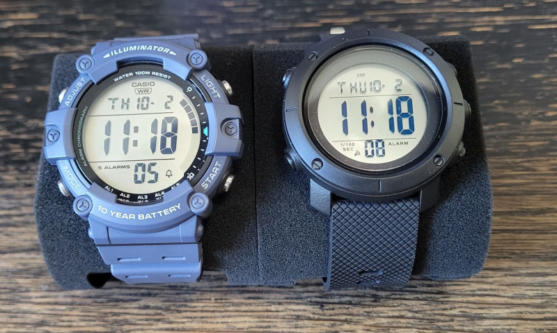 A Casio AE-1500-al lényegében azonos, egész hangyányit kevésbé vastag, de teljesen jól olvasható számjegyekkel, Casio-énál jobb betekintési szögekkel, szép zöld EL világítással, lágy és lyukakkal sűrűbben ellátott, jobban beállítható szíjjal, és itt nincs a visszaszámláló működésében sem hiba, lehet resetelni (az időpont állításhoz pedig sokáig kell lenyomva tartani a gombot így véletlen lenyomás nem fogja elállítani, és a 30 mp fölötti resetelés is kerekít a következő percre). Ráadásul gyárilag van rajta védőfólia (bár a kijelző itt is picit süllyesztett, kisebb eséllyel karcolódik mint ha szintben lenne)