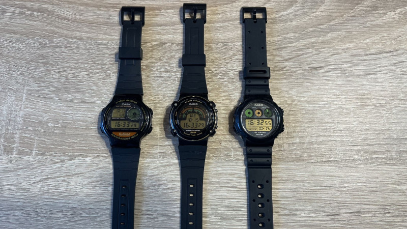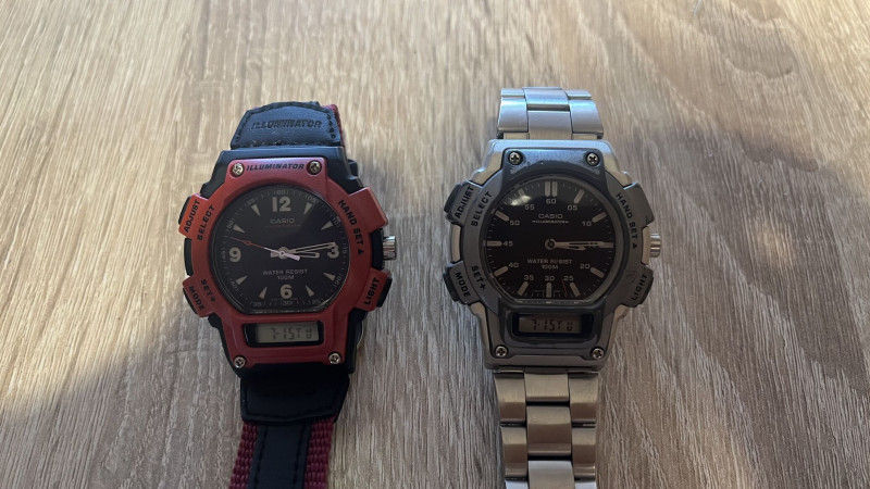 Sokáig csak analóg óráim voltak (bár azok közt is ontopik az egyik kedvenc, a Casio Duro), nosztalgiából még a nyáron beszereztem egy szürkéskék Casio W800-t, abban bízva, h annak nagyobb számjegyeit olvasószemüveg nélkül is látom majd (jó fényben ez rendben is, szürkületben viszont már nem igazán, a világítása pedig elég vacak, úgyhogy úton az AE-1500, ott már aligha lesz ezzel gond