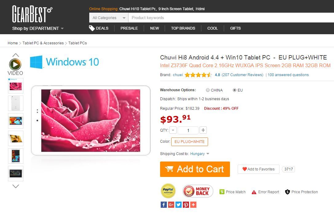 A Gearbest-en csak papíron van, mert ha rákattintok az "Add to cart" gombra, rögtön kiírja, hogy "Out of stock". -